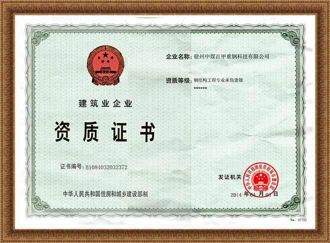 中國鋼結(jié)構(gòu)制造企業(yè)資質(zhì)證書 (一級(jí))