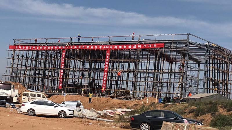 寧夏公司在中外建華設(shè)計(jì)院的配合下,於8月17日在短短4天的時(shí)間做出了整體方案圖及結(jié)構(gòu)施工圖紙?jiān)O(shè)計(jì)并通過了甲方的審核和認(rèn)可并得到了一致的好評。這個項(xiàng)目要由四個專業(yè)隊(duì)伍來完成即土建基礎(chǔ)、鋼結(jié)構(gòu)主體、外垟夾心板及幕墻、室內(nèi)裝修、水電及智能投影功能。同時(shí);要完成室外2萬平米的廣場。工程位於草原腹地。沒有道路,自己建2公里臨時(shí)便道,沒有水用車?yán)?,沒有電用柴油發(fā)電機(jī)。沒有隊(duì)伍從徐州組織鋼結(jié)構(gòu)隊(duì)伍,從寧夏組織裝修隊(duì)伍及強(qiáng)電弱電隊(duì)伍,在當(dāng)?shù)亟M織土建和機(jī)械隊(duì)伍。在沒有條件創(chuàng)造條件也要上,保證開工典禮使用,發(fā)揚(yáng)中煤百甲精神。以武漢雷神山速度為榜樣。保證十八天完成任務(wù)的精神鼓舞下。寧夏公司全力以赴,總經(jīng)理劉劍將有限的資金全部投入。公司屈徐平付總經(jīng)理整體規(guī)劃、調(diào)動組織資源,日夜操勞。項(xiàng)目部經(jīng)理魯年富發(fā)揚(yáng)敢打硬仗,奮勇拼搏的精神。有效組織施工,日夜兼程吃住在現(xiàn)場。組織了施工機(jī)械40余臺其中有山推、挖機(jī)、鏟車、吊車、發(fā)電機(jī)、泵車等進(jìn)行場地平整基礎(chǔ)開挖和澆筑混凝土,組織施正人員150余人不分白天晝夜而且是不同工種同時(shí)作業(yè),號稱“百人大會戰(zhàn)”。在全體參戰(zhàn)人員的努力下,於9月20日按期完成竣工。交了內(nèi)、外高檔裝修,室內(nèi)功能齊全,同項(xiàng)目投資標(biāo)準(zhǔn)相適應(yīng)高大尚的展示廳和滿足開工典禮使用的會議廣場。以從開工到竣工創(chuàng)造了十八天完成的中煤百甲公司的雷神山速度和精品工程。得到了參加領(lǐng)導(dǎo)和業(yè)主的大力贊賞和表揚(yáng)。