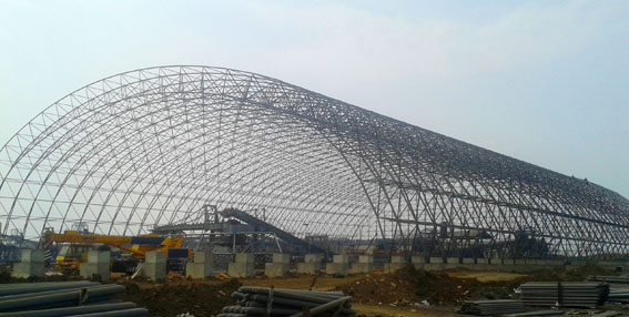 具有桿系和殼體雙重受力的特點,提出了設(shè)計和分析時合理的結(jié)構(gòu)形式、利用三心圓滿足儲料倉凈空的要求。利用仿真分析技術(shù)設(shè)計、控制了含鋼量。安裝:采用塔架支撐、逆安裝、單邊起步等工藝完成起步單元做成穩(wěn)定結(jié)構(gòu)承受施工荷載的高空散裝施工工藝,保證了柱面網(wǎng)殼在安裝過程中的質(zhì)量和安全。